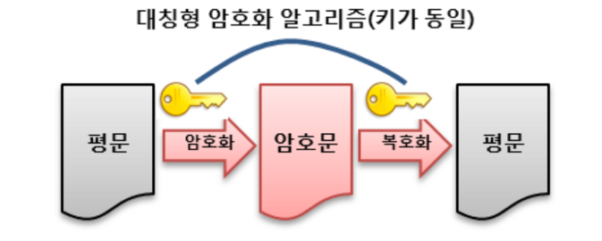 - 암호화, 복호화에 서로 동일한 키가 사용되는 암호화 방식