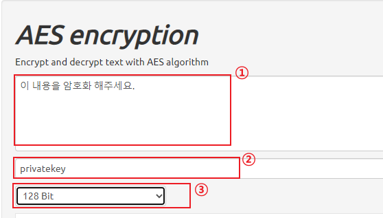 - ① 암호화할 데이터 값