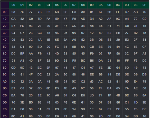 - 128비트 입력(16진수) -> Sbox의 표 기준으로 값을 치환