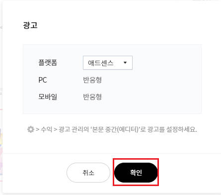 TIP. 본문 중간(에디터)에 광고를 넣고 싶다면?