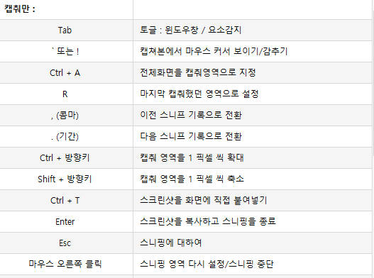 다양한 캡쳐 프로그램이 많긴 하지만 이 프로그램을 쓰는 이유 중 가능 큰 이유는 간단한 단축키로 캡쳐 후 저장을 하지 않고 바로 이미지를 복사하여 사용할 수 있습니다.