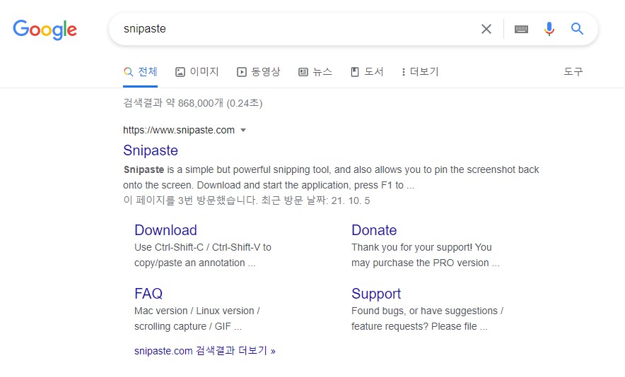 ② 최상단에 노출되고 있는 snipaste 공식페이지 클릭 후