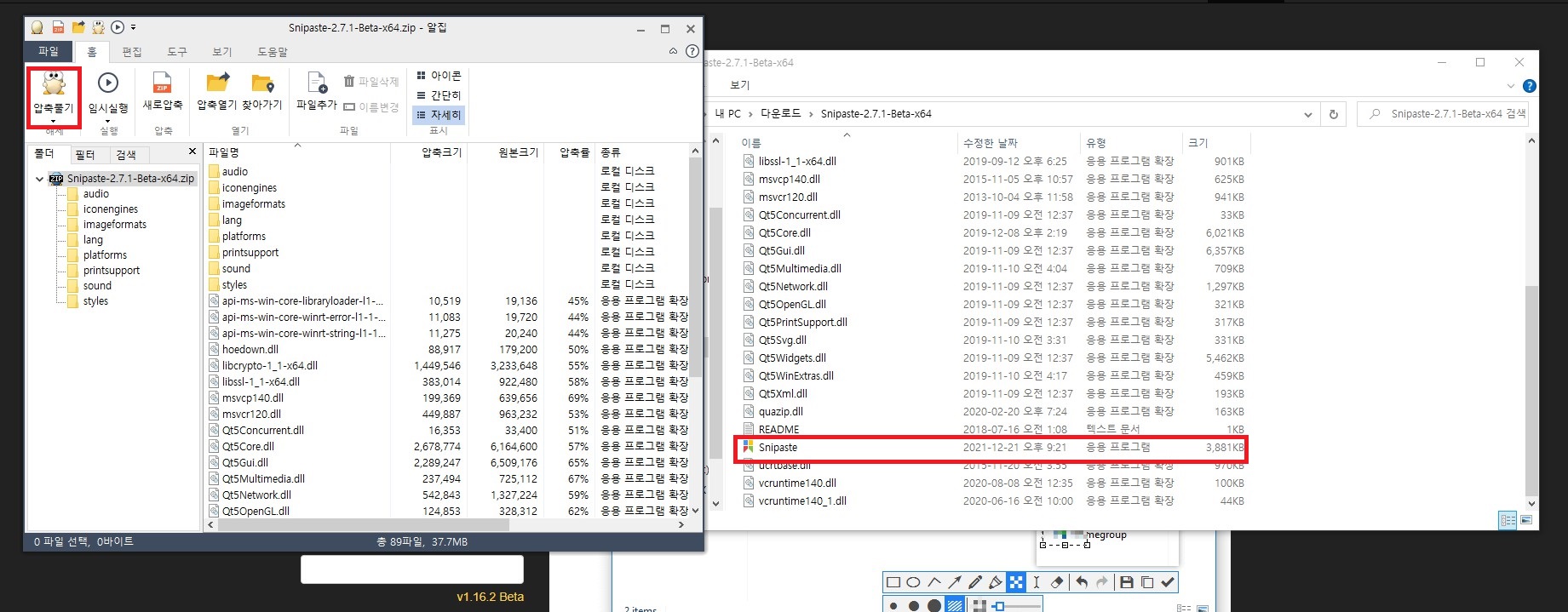 ③ 압축파일을 풀어준 후 snipaste.exe를 실행시켜 줍니다