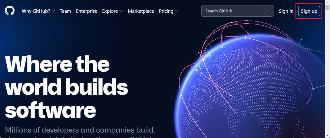 github 사이트에 접속하여 회원가입을 진행한다. 회원가입은 입력하라는 대로 하면 어렵지 않게 가입할 수 있다.