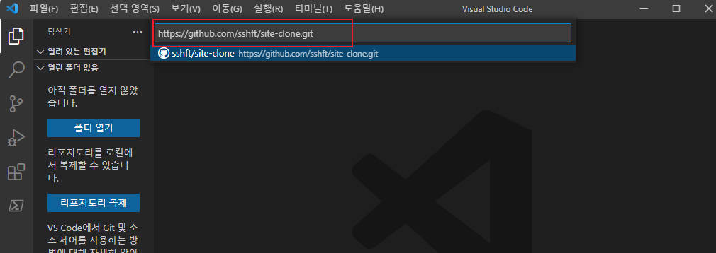 복제가 완료되면 리포지토리를 열어줍니다.