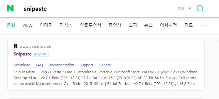 ① 검색창에 [ snipaste ] 또는 [snipaste 다운로드]로 검색해줍니다