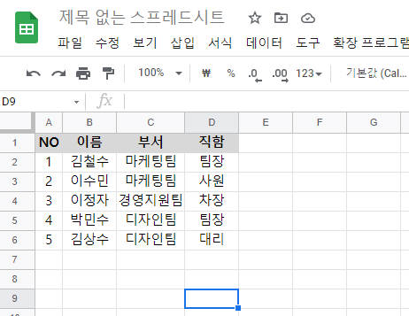 1. 구글 스프레드시트 시작하기