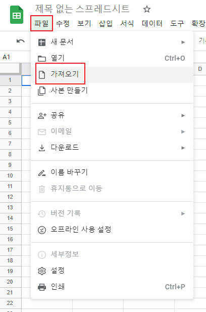 2.구글 스프레드시트 엑셀 파일 불러오기/내보내기
