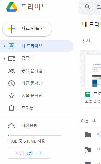 만약 구글 드라이브로 접속했다면 새로 만들기 버튼을 눌러 생생해주면 됩니다.