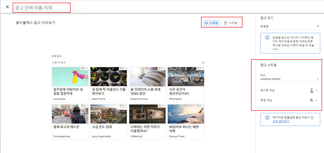 반응형 멀티플렉스 광고 단위를 맞춤설정하는 방법 - Google 애드센스 고객센터