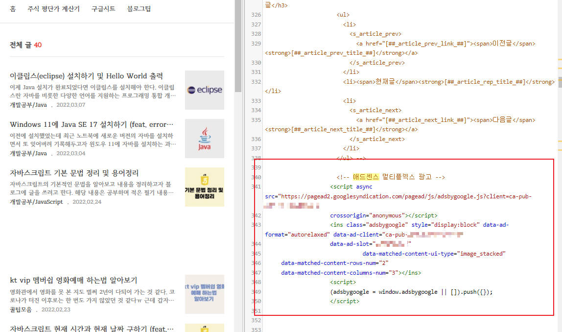 2022.02.04 - [티스토리 블로그] - 티스토리 애드센스 본문상단 광고 2개 넣기