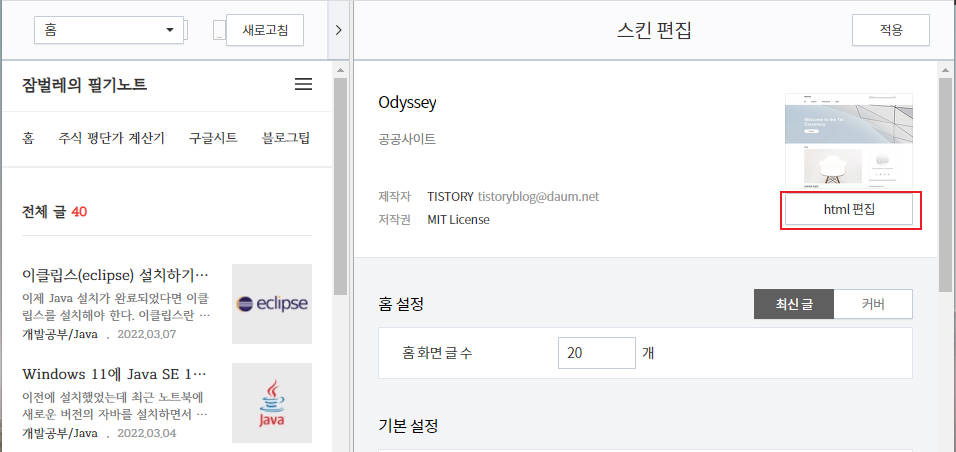 2. 티스토리 스킨 수정하기