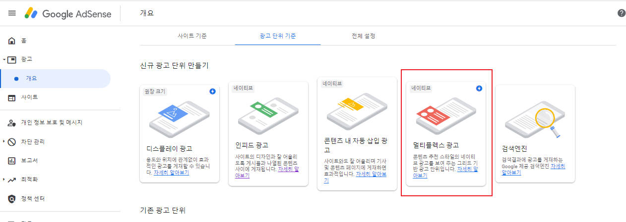 1. 애드센스 멀티플렉스 광고 설정하기