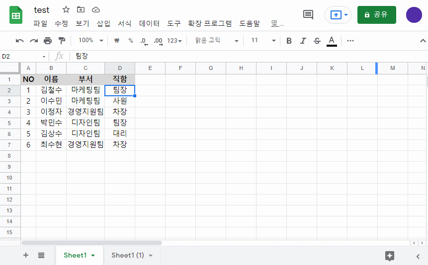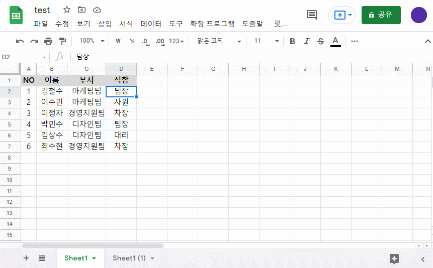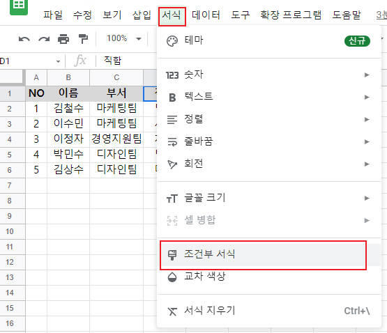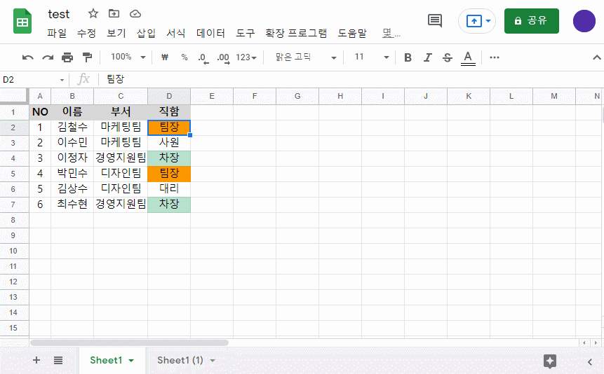 #2 구글 스프레드시트 조건부 서식 중복값 찾기 및 삭제