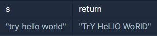 "try hello world"는 세 단어 "try", "hello", "world"로 구성되어 있습니다. 각 단어의 짝수번째 문자를 대문자로, 홀수번째 문자를 소문자로 바꾸면 "TrY", "HeLlO", "WoRlD"입니다. 따라서 "TrY HeLlO WoRlD"를 리턴합니다.