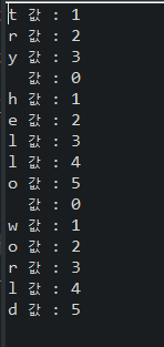위에 조건에서 공백을 만나지 않으면 카운드가 1씩 증가한다. 여기서 "try hello world"라는 문자를 해당 조건에 적용시키면 cnt값은 아래와 같이 확인할 수 있다.