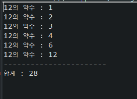 반복문의 약수를 하나씩 찍어보면 아래와 같다.