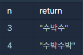 n값만큼 반복하면서 돌면서 i%2가 0일때 "수" 아닐때 "박"을 해주면 입출력 결과와 같이 출력된다.
