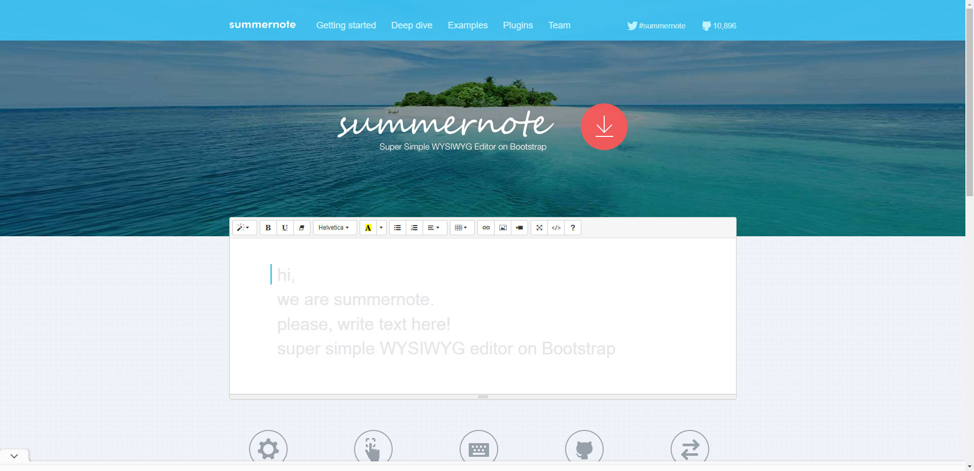 우선 아래에 썸머노트 공식 사이트에 접속하면 실제로 적용된 에디터를 사용해 볼 수 있다. 공식문서도 확인할 수 있으니 필요한 기능이 있다면 찾아서 활용해 보는 것도 좋다. 또한 서머 노트는 부트스트랩 기반으로 개발된 에디터라고 한다. 깔끔한 디자인이고 사용성도 좋아 많이 사용된다고 한다.